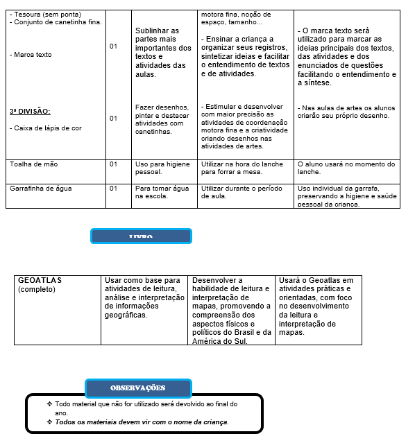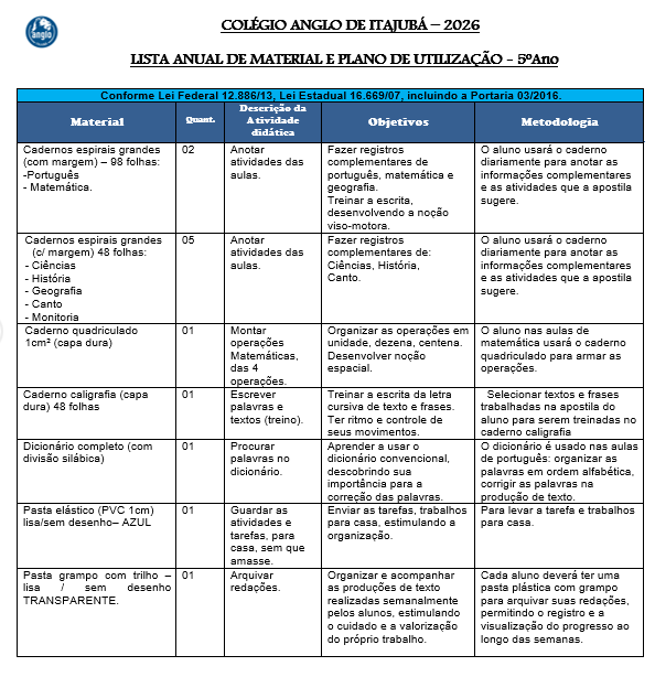 Lista de materiais – 5º ano 2026