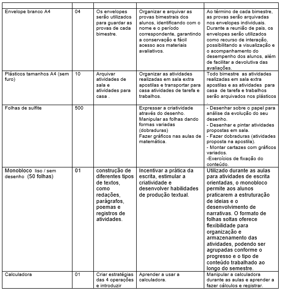 Lista de materiais – 4º ano 2026
